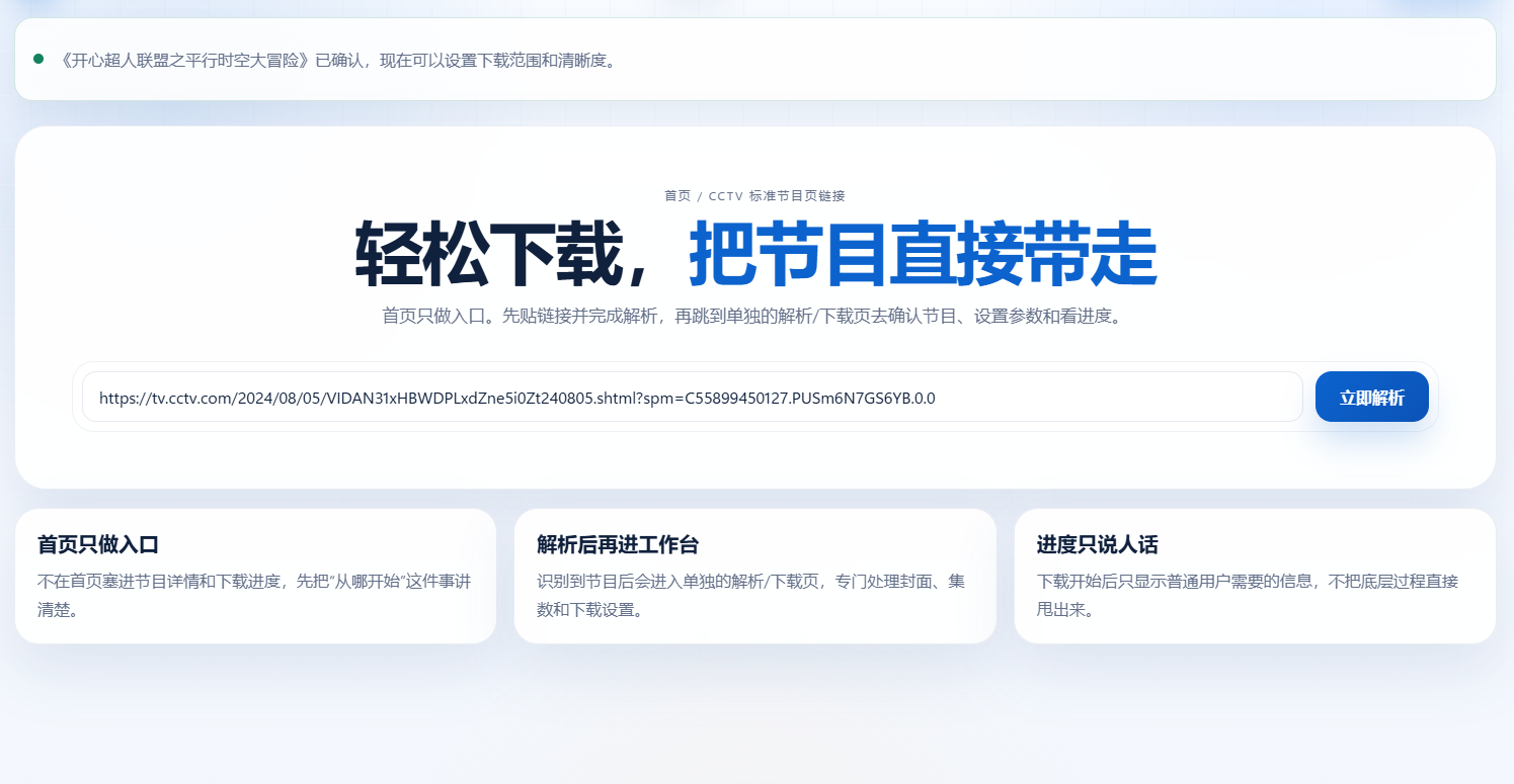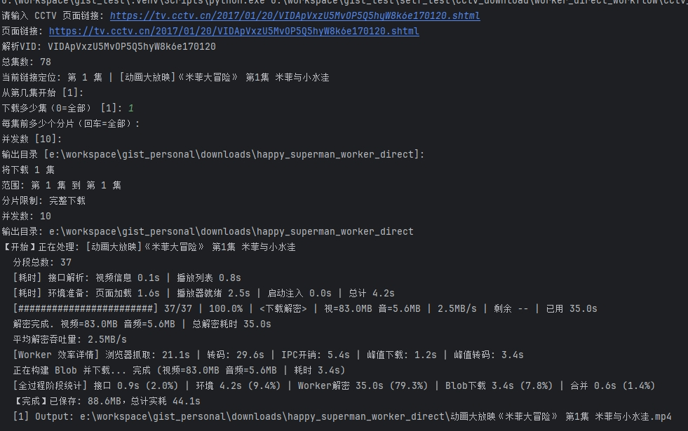 先是搞定了下载脚本,能把CCTV的视频批量拉下来了。