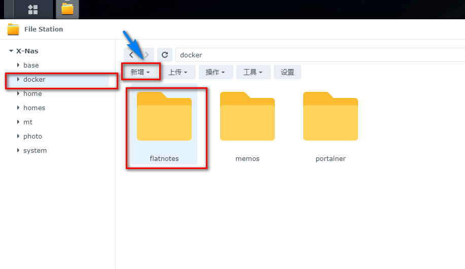File Station 打开docker 文件夹,创建flatnotes文件夹