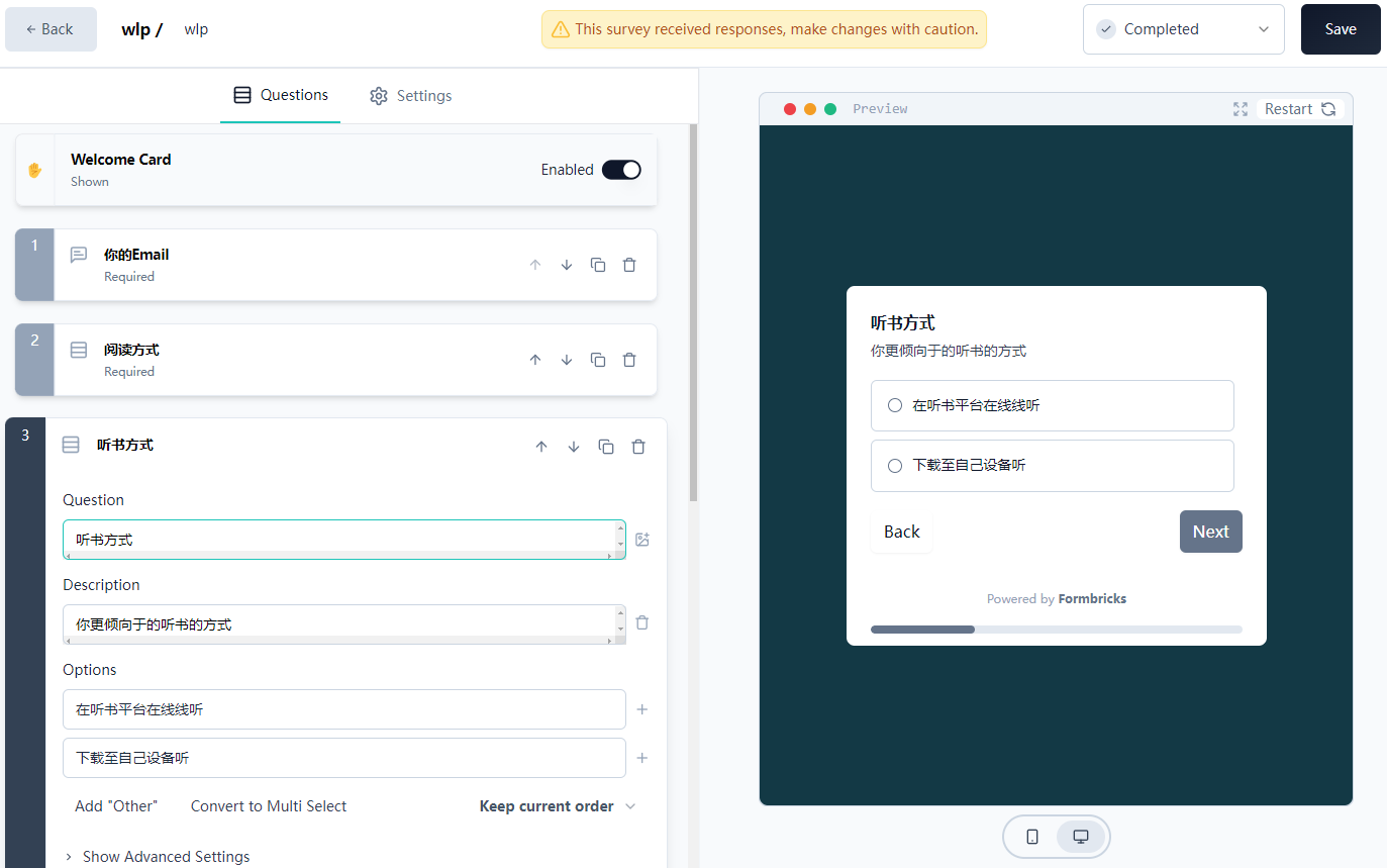 version:"3.3"x-environment:&environmentenvironment:# The url of your Formbricks instance used in the admin panelWEBAPP_URL:# PostgreSQL DB for Formbricks to connect toDATABASE_URL:"postgresql://postgres:postgres@postgres:5432/formbricks?schema=public"# NextJS Auth# @see: https://next-auth.js.org/configuration/options#nextauth_secret# You can use: `openssl rand -hex 32` to generate oneNEXTAUTH_SECRET:6ccd890b103017d5ffb36a3f4202d3d95bfd55455e12c31ccf2b5214d78bd229# Set this to your public-facing URL, e.g., https://example.com# You do not need the NEXTAUTH_URL environment variable in Vercel.NEXTAUTH_URL:# Encryption Key is used for 2FA & Single use URLs for Link Surveys# You can use: $(openssl rand -hex 32) to generate oneENCRYPTION_KEY:81827cff9f55e4b31879ed5d64e2af0202b7cd027b098d01a7cdcaa9b1f08dcb# PostgreSQL passwordPOSTGRES_PASSWORD:postgres# Enterprise License Key# Required to access Enterprise-only features# ENTERPRISE_LICENSE_KEY:# Email Configuration# MAIL_FROM:# SMTP_HOST:# SMTP_PORT:# SMTP_SECURE_ENABLED:# SMTP_USER:# SMTP_PASSWORD:# Set the below value if you have and want to use a custom URL for the links created by the Link Shortener# SHORT_URL_BASE:# Set the below to 0 to enable Email Verification for new signups (will required Email Configuration)EMAIL_VERIFICATION_DISABLED:1# Set the below to 0 to enable Password Reset (will required Email Configuration)PASSWORD_RESET_DISABLED:1# Uncomment the below and set it to 1 to disable SignupsSIGNUP_DISABLED:0# Uncomment the below and set it to 1 to disable logging in with email# EMAIL_AUTH_DISABLED: 1# Uncomment the below and set it to 1 to disable Invites# INVITE_DISABLED:# Uncomment the below and set a value to have your own Privacy Page URL on the signup & login page# PRIVACY_URL:# Uncomment the below and set a value to have your own Terms Page URL on the auth and the surveys page# TERMS_URL:# Uncomment the below and set a value to have your own Imprint Page URL on the auth and the surveys page# IMPRINT_URL:# Uncomment the below and set to 1 if you want to enable GitHub OAuth# GITHUB_ID:# GITHUB_SECRET:# Uncomment the below and set to 1 if you want to enable Google OAuth# GOOGLE_CLIENT_ID:# GOOGLE_CLIENT_SECRET:# Uncomment the below to automatically assign new users to a specific team and role within that team# Insert an existing team id or generate a valid CUID for a new one at https://www.getuniqueid.com/cuid (e.g. cjld2cjxh0000qzrmn831i7rn)# (Role Management is an Enterprise feature)# DEFAULT_TEAM_ID:# DEFAULT_TEAM_ROLE: admin# Uncomment and set to 1 to skip onboarding for new users# ONBOARDING_DISABLED: 1# The below is used for Next Caching (uses In-Memory from Next Cache if not provided)# REDIS_URL:# The below is used for Rate Limiting (uses In-Memory LRU Cache if not provided)# REDIS_HTTP_URL:services:postgres:restart:alwaysimage:postgres:15-alpinevolumes:- /volume1/docker/formbricks/postgres:/var/lib/postgresql/data<<:*environmentformbricks:restart:alwaysimage:ghcr.io/formbricks/formbricks:latestdepends_on:- postgresports:- 32000:3000volumes:- /volume1/docker/formbricks/uploads:/home/nextjs/apps/web/uploads/<<:*environment