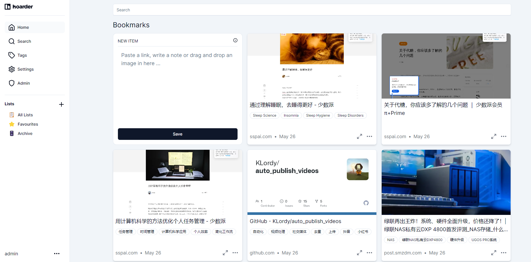 Nas用户的完美本地运行的书签管理 一站式信息管理:如何搭建和使用Hoarder 管理你的数字信息?