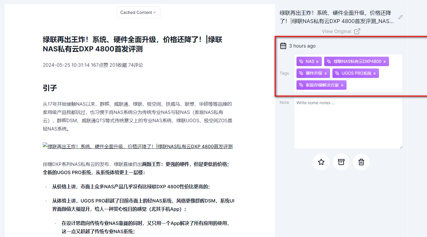 回到web端,你就能看到这篇文章成功被收藏,并且已经通过ai分好了类别