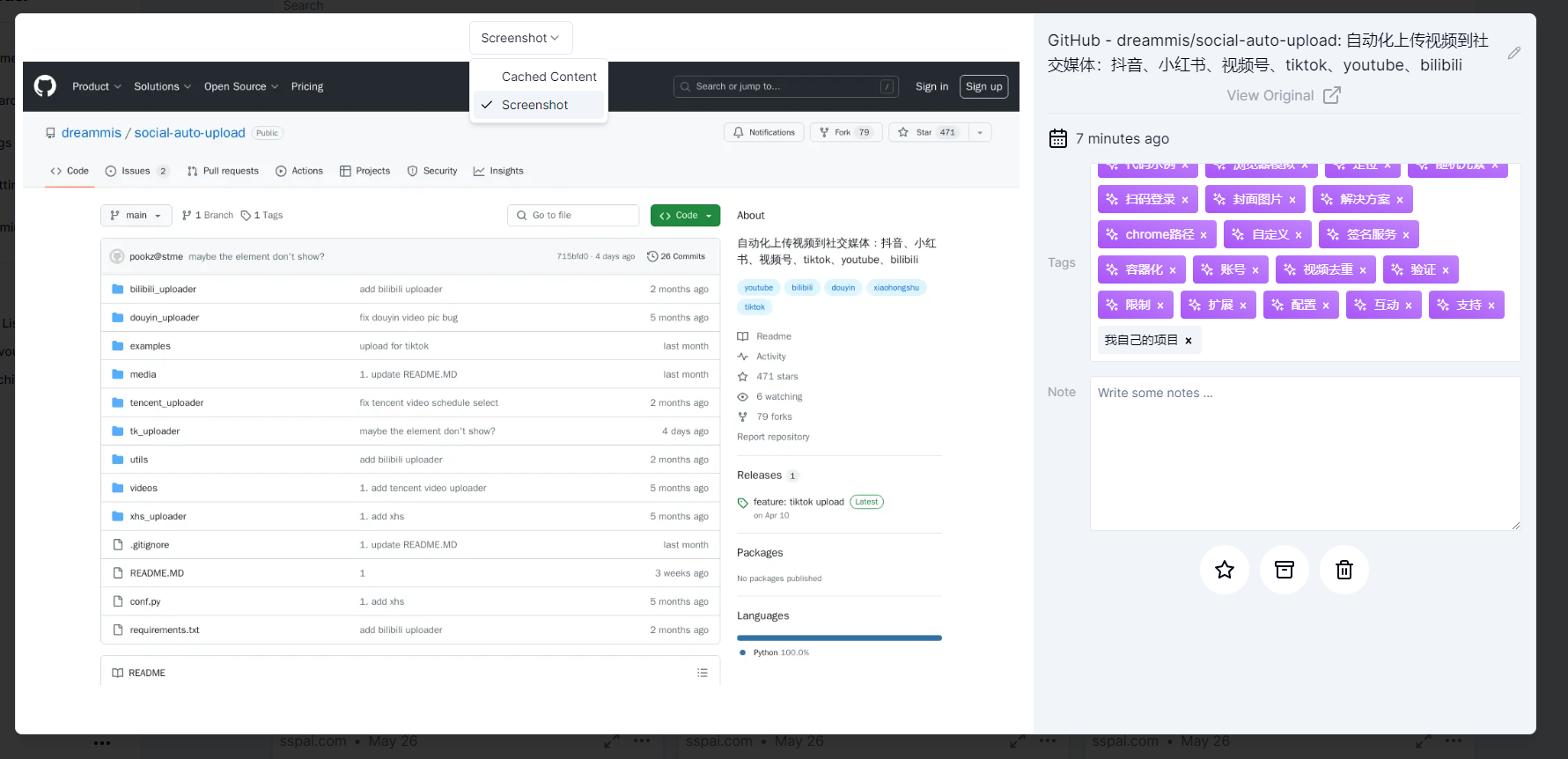 Hoarder不仅仅是一个自托管的书签应用,它结合了AI技术,旨在为数据收藏者提供极致的信息管理体验。以下是Hoarder的核心功能: