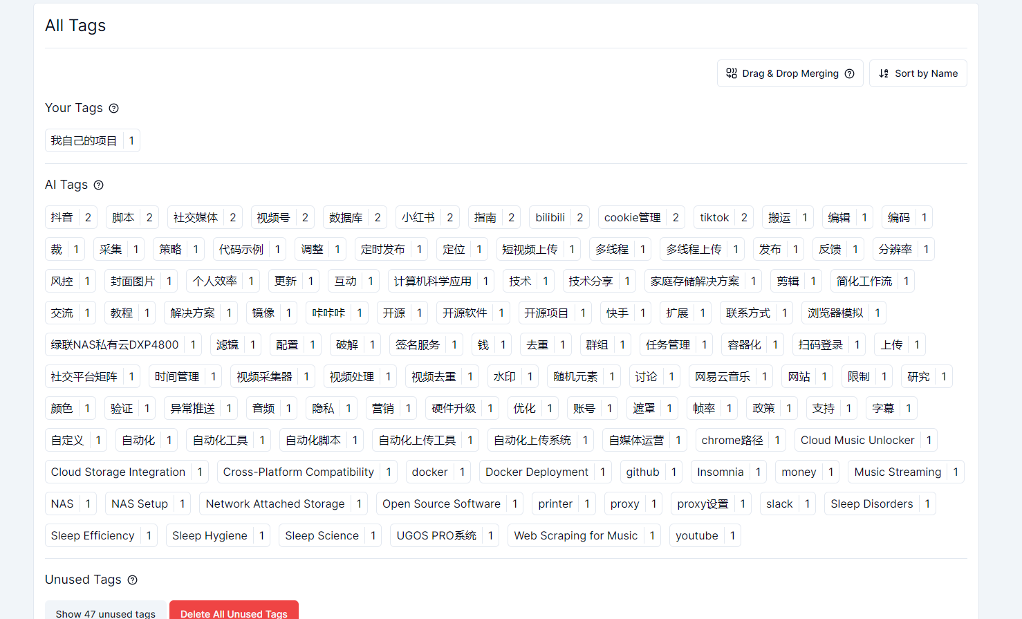 - 基于AI的自动标签系统:使用本地或在线模型,如ollama,智能标注,让内容组织更加智能。