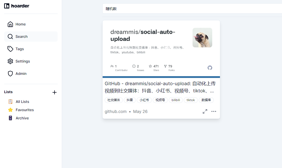 而今天的介绍的Hoarder —— 一个专为数据收藏者打造的自托管书签应用,配备AI智能标签和全文搜索功能,彻底改变您的信息收藏方式。