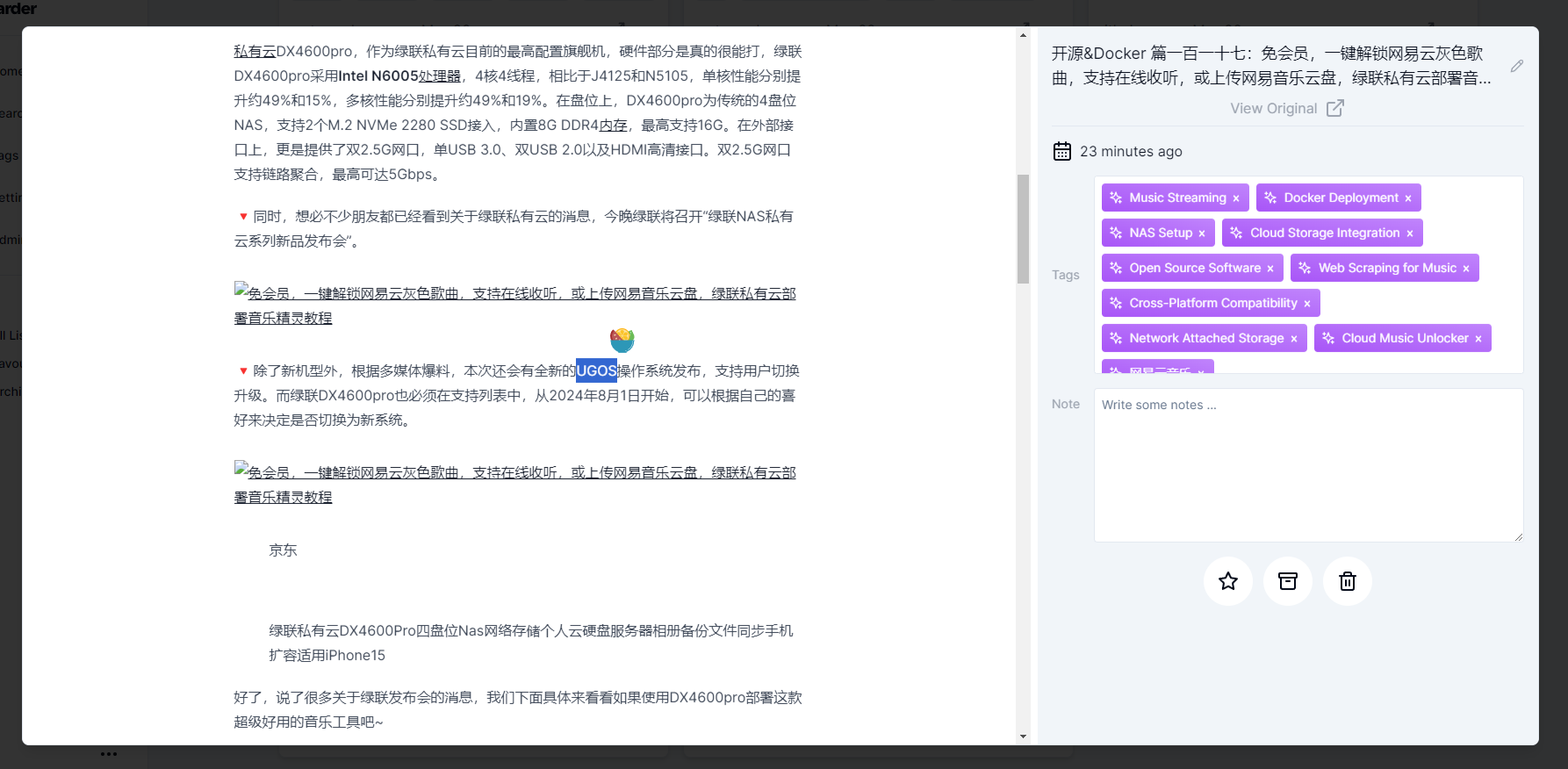 今天给各位nas爱好者,介绍一个新玩具-一个全新的书签笔记管理系统