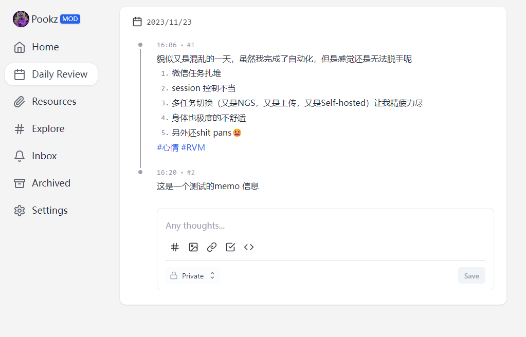 Memos在我众多玩具中,并不仅仅是一个简单的笔记工具,它是中年男士情感世界的安全港湾。在这里,你可以无忧地记录生活琐事、深夜思考,甚至是那些未曾对人吐露的心声。