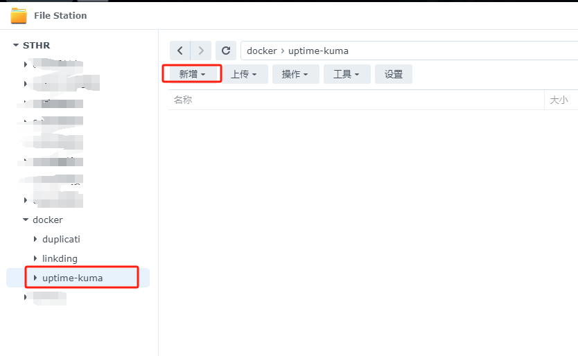 File Station 打开docker 文件夹,创建Uptime-Kuma文件夹