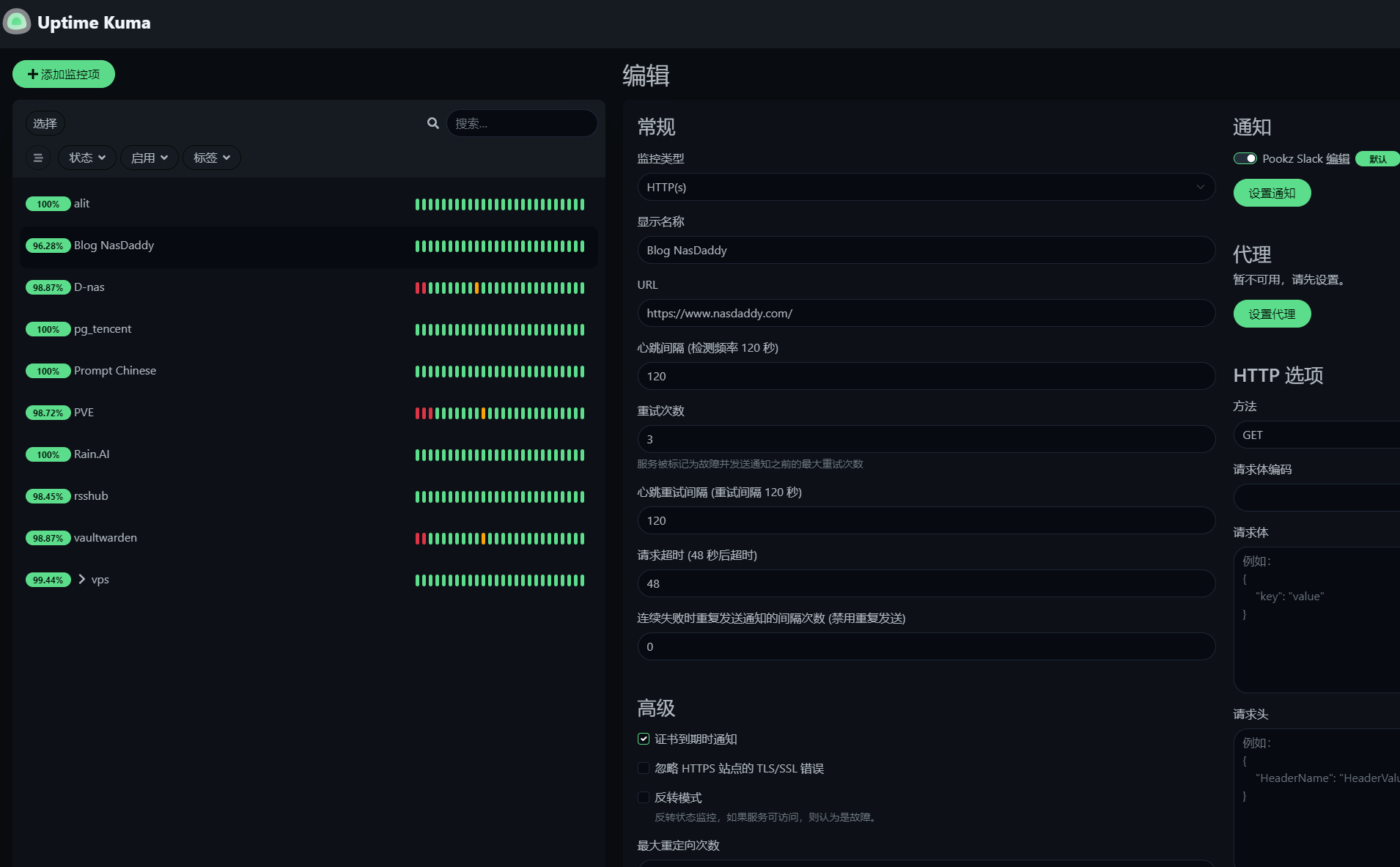 - 最后在uptime上设置slack 推送地址