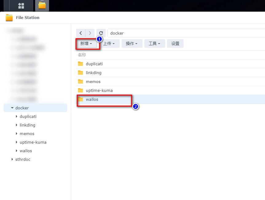 File Station 打开docker 文件夹,创建Wallos文件夹