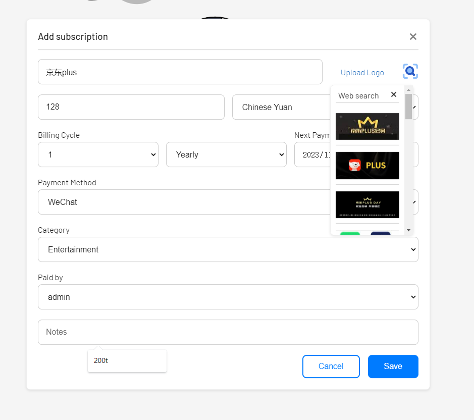 标志搜索:如果您没有上传,Wallos 可以在网络上搜索订阅的标志。