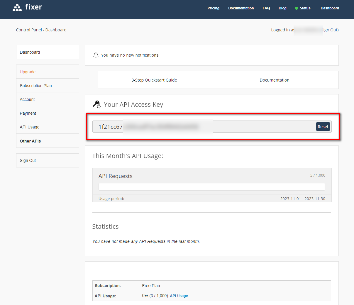 如果你也和我一样有一些国外服务的会员,需要汇率转化,那么你需要申请Fixer的账号,每个月有1000次免费调用