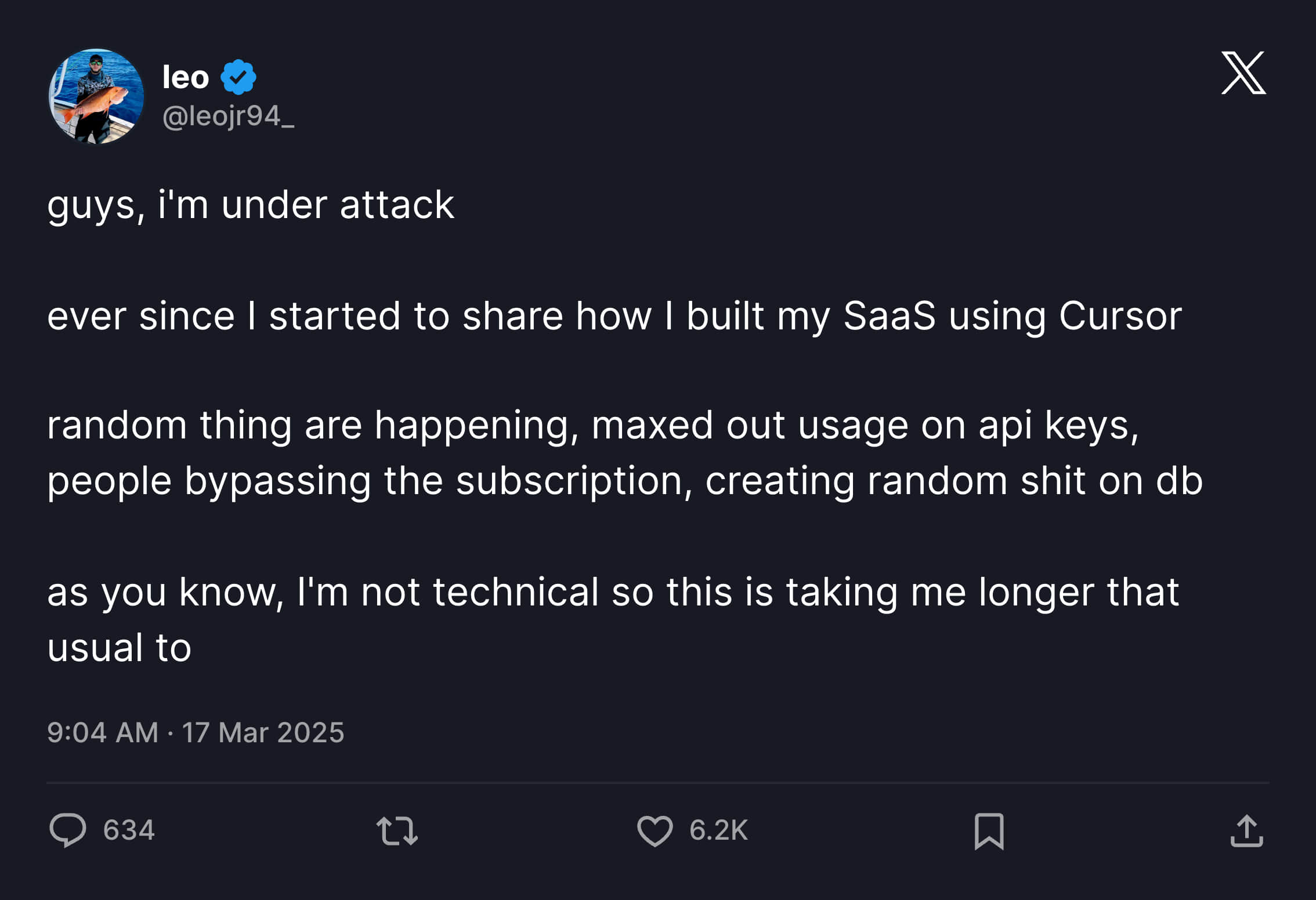 X 上的这位 Leo 老哥的故事,他在今年 3 月 15 号的时候,发布了一个帖子,介绍他使用 Cursor 通过 Vibe Coding 的方式制作了一个产品,在全程没有参与手动编写代码的情况下,产品收获到了付费用户。