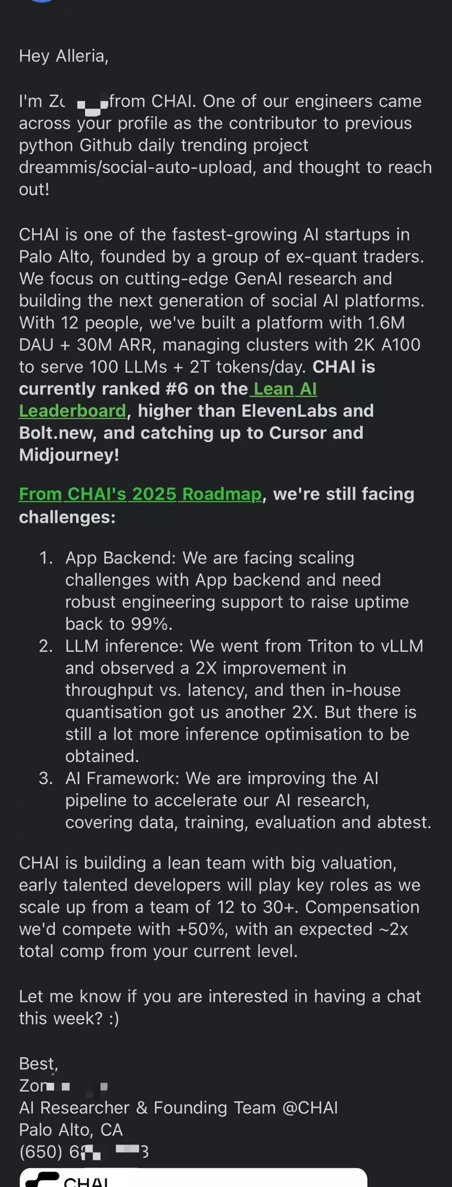 前阵子还收到一个邮件来自加州,似乎像是招聘的,又感觉像是诈骗的,我的经历和他的岗位似乎不怎么匹配。我还专门查了下电话,看是不是缅甸的,结果是加州的..